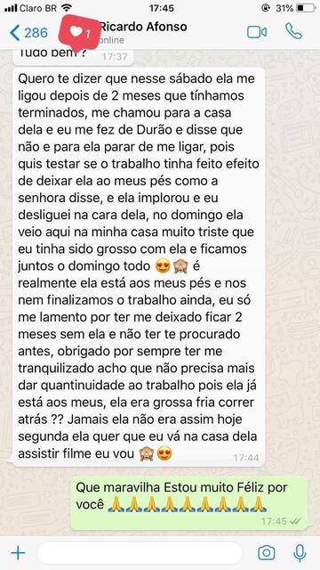 Cada caso é único. Antes de qualquer trabalho, é feita uma consulta espiritual para entender a situação e verificar se há caminhos abertos para o trabalho. A espiritualidade é quem dá a resposta final.